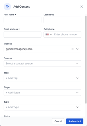 - A pop-up window will open where you can enter the contact’s details.