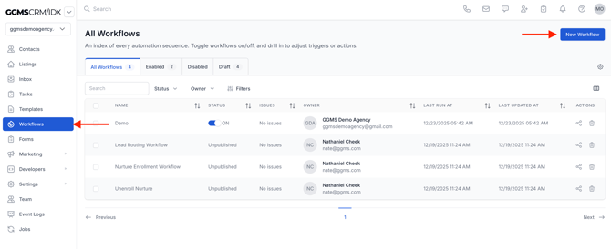 - In the left-side panel, click Workflows.